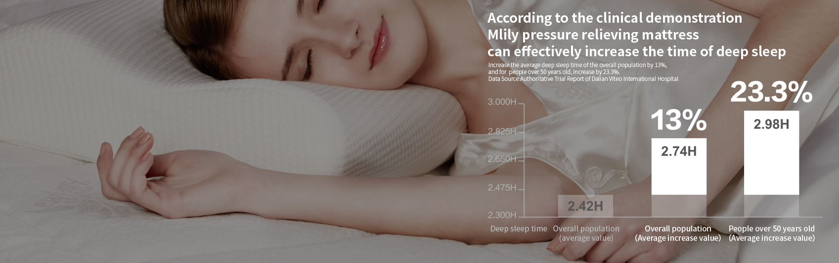 According to the clinical demonstration,Mlily pressure relieving mattress can effectively increase the time of deep sleep.