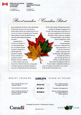 Canadian Patent Certification for Non-Thermosensitive Pressure Relieving memory foam