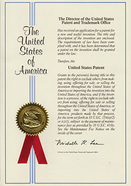 U.S. Patent Certification for Non-Thermosensitive Pressure Relieving memory foam